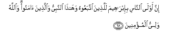 "Lo! those of mankind who have the best claim to Abraham are those who followed him, and this Prophet and those who believe (with him) and Allah is the protecting Friend of the believers" (Surah III, 68)