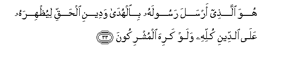 "He it is who hath sent His Messenger with the Guidance and the Religion of Truth, that He may cause it to prevail over all religions, however much the idolaters may averse" (Surah Al-Tawbah, ver 33).